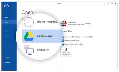 Google Drive se acerca a Office e interactúan. Un nuevo plugin de Google permite abrir, editar y guardar documentos de Office en Google Drive. Al descargarlo, Google Drive aparecerá en la lista de volúmenes de almacenamiento que Office puede ver y a los que puede conectarse.