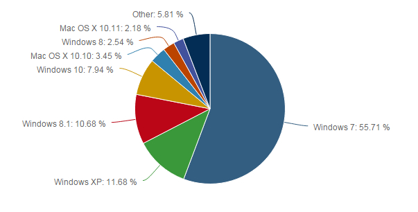 Windows XP es el segundo sistema del escritorio con una cuota del 11,68%. Incomprensible para un sistema sin soporte pero ahí está. Windows 8.1 mantiene el 10,68 por ciento mientras que Windows 8 todavía tiene un 2,54 por ciento y Vista casi ha desaparecido con el 1,74. Linux se mantiene como siempre en cuotas cercanas al 2 por ciento.