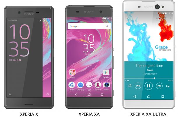La serie X, compuesta por Xperia X, Xperia XA y Xperia XA Ultra, se destacan principalmente por sus prestaciones en cuanto a cámara, batería y diseño, con características como el enfoque automático hibrido predictivo del Xperia X, una arquitectura externa sin bordes como el Xperia XA, y la cámara frontal para selfies del Xperia XA Ultra.