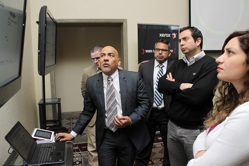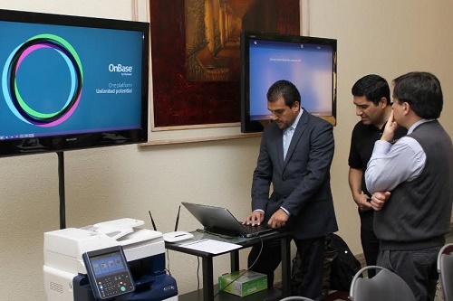 Los asistentes se mostraron muy interesados en el uso de la plataforma para sus diferentes requerimientos, como en la mantención de registros estudiantiles y de proveedores, y tuvieron la oportunidad de probar in situ de la interacción entre los servicios de Xerox y Hyland, haciendo pruebas de digitalización y gestión de documentos en la plataforma.