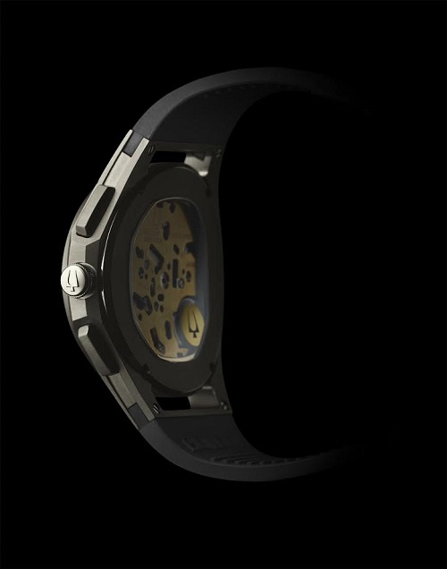 Su acabado diseño externo también es digno de destacar. El Bulova CURV está construido con una caja delgada, aerodinámica y contorneada, que rodea la muñeca del usuario con un calce perfecto. Sin dejar de lado su versión más emblemática con tapa trasparente que permite ver la maquinaria del reloj, caja y broche fabricados de titanio y acero inoxidable y correa negra de resina de alta calidad.