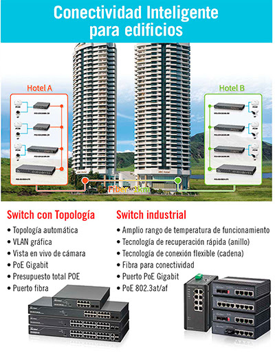 Por otra parte, la oferta de switches de AirLive incluye una serie de características ideales para redes en edificios. Esto es posible con los nuevos switches con administración gráfica de la topología de red, switches industriales preparados para entornos severos y con tecnología en anillo para una rápida recuperación ante caídas de la red.