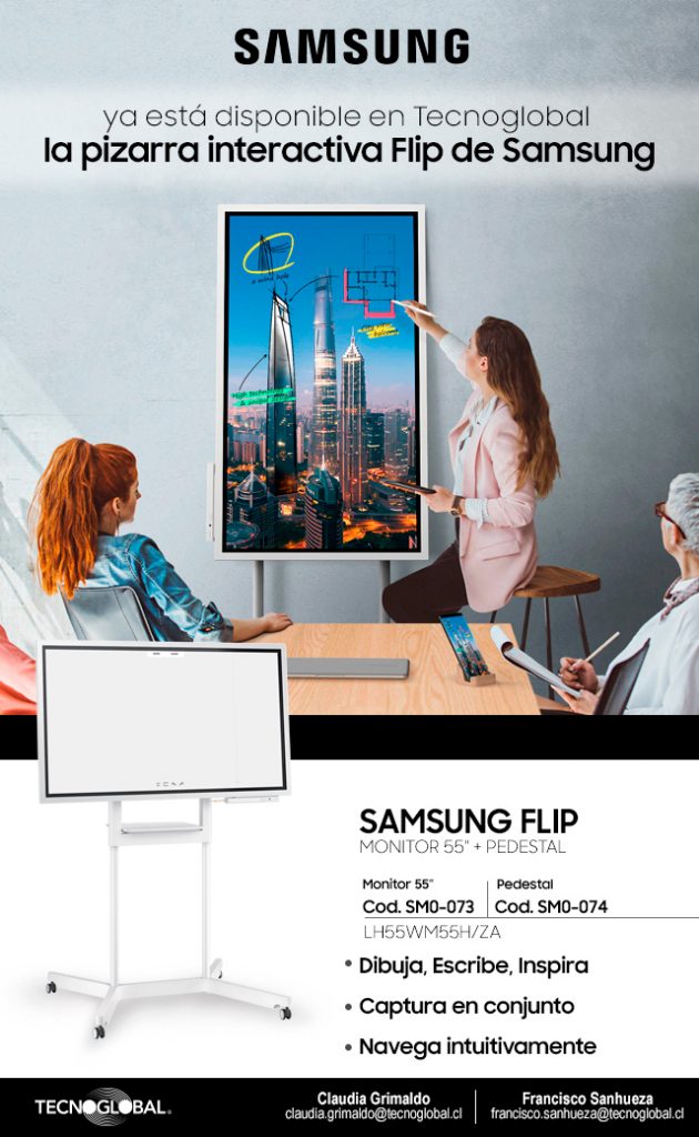 Para mayor información puede contactar al team Samsung en Tecnoglobal: Claudia Grimaldo (claudia.grimaldo@tecnoglobal.cl) y Francisco Sanhueza (francisco.sanhueza@tecnoglobal.cl).