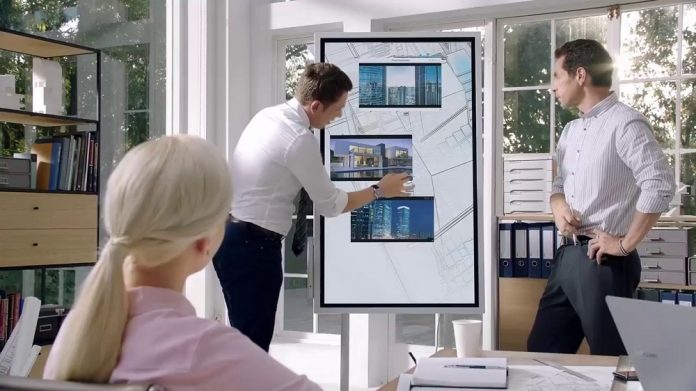 La nueva Samsung Flip habilita una experiencia de sincronización completa de trabajo colaborativo y amigable al uso, permitiendo alinear los dispositivos personales con la pantalla central para visualizar, hacer anotaciones o compartir contenidos interactivos.