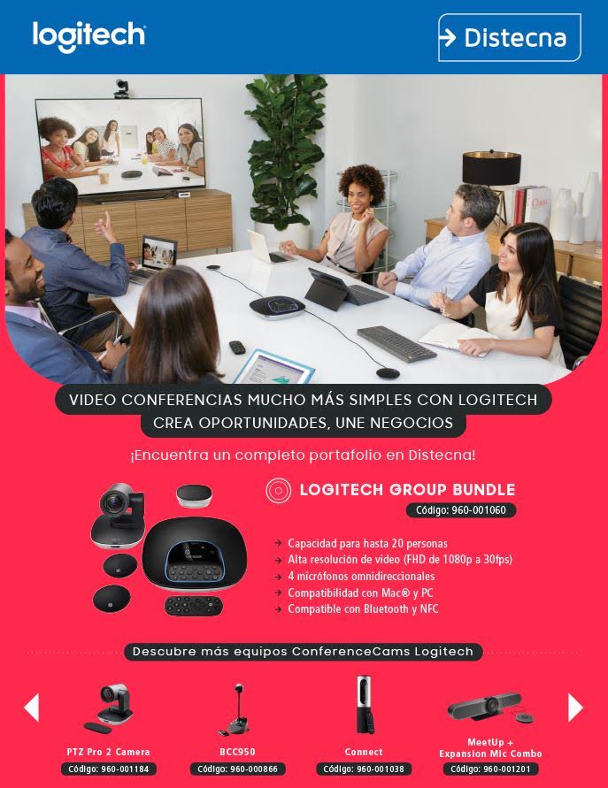 Dentro del portafolio Logitech en Distecna destacan los siguientes equipos ConferenceCam: