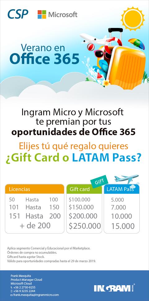 Mayor información, solicitar a Frank Mesquita, Product Manager Cloud en Ingram Micro, al email frank.mesquita@ingrammicro.com