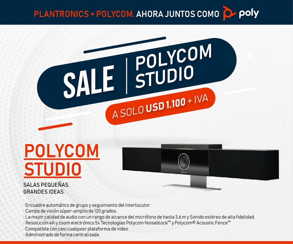 El mayorista en Chile junto Poly, la firma resultante de la unión entre Plantronics y Polycom, anuncian que la solución Polycom Studio se encuentra a un fantástico precio de oferta en el mayorista.