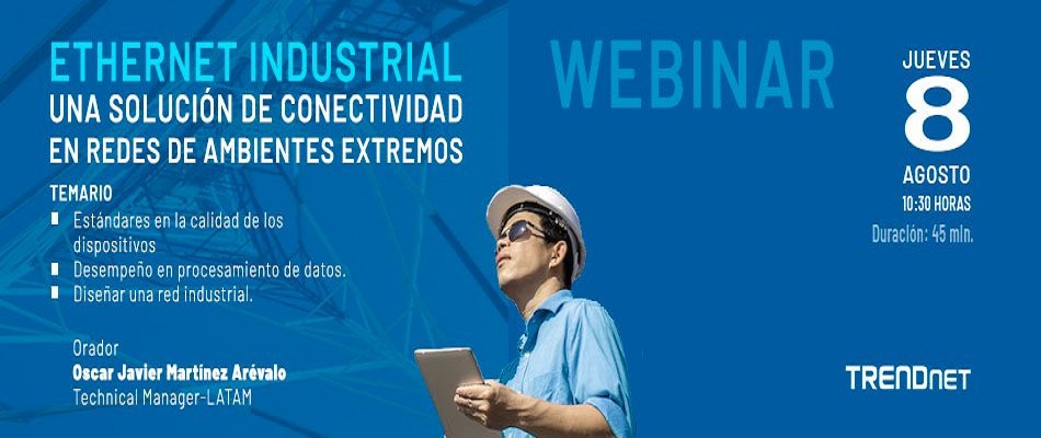 El mayorista está invitando al canal de distribución a participar este jueves 08 de agosto de un Webinar que TRENDnet impartirá a partir de las 10:30 horas, denominado “Ethernet Industrial: Una solución de conectividad en redes de ambientes extremos”.