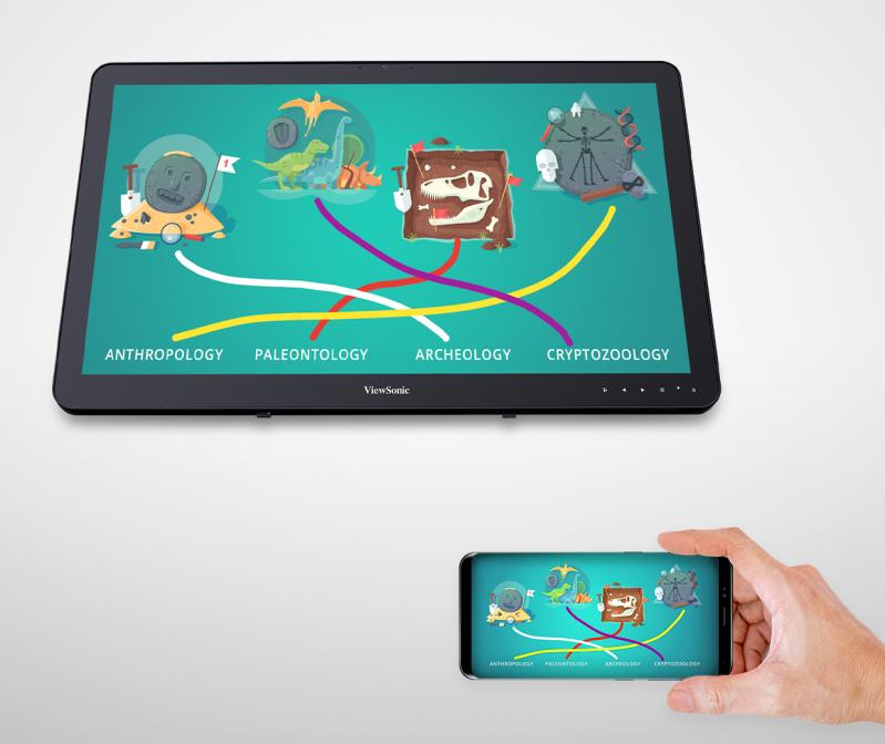 Por su parte, el software ViewBoard Cast permite la transmisión de contenido desde dispositivos móviles a una pantalla ViewSonic a través de redes inalámbricas o por cable para una fácil anotación.