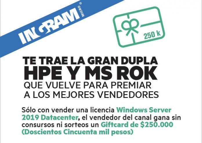 Hasta el 31 de marzo está vigente una nueva promoción de Ingram Micro, HPE y MS ROK, que regala gift cards de $250.000 por la venta de una licencia Windows Server 2019 Datacenter.