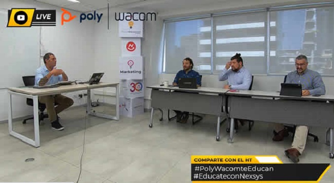 En este evento, desarrollado al estilo “Late” (programa de conversación), participaron los ejecutivos de Nexsys de Chile, Matías Castro, Product Manager Wacom, y Ricardo Borlone, Product Manager Poly, junto a Juan Pablo Caruso, National Manager de Wacom para Chile y Bolivia, quienes presentaron al canal las soluciones y su visión referente a los requerimientos de este sector, especialmente en lo relacionado a las clases a distancia, tema de vital importancia dada la contingencia sanitaria actual.
