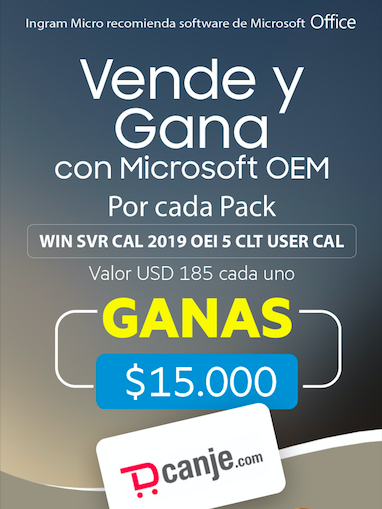 Hasta este miércoles 30 de diciembre, los clientes de Ingram Micro y Microsoft OEM ganan $15.000 en puntos Dcanje.com, por cada pack de Windows Server 2019 CAL User. SKU: 4394821 y PN: R18-05878