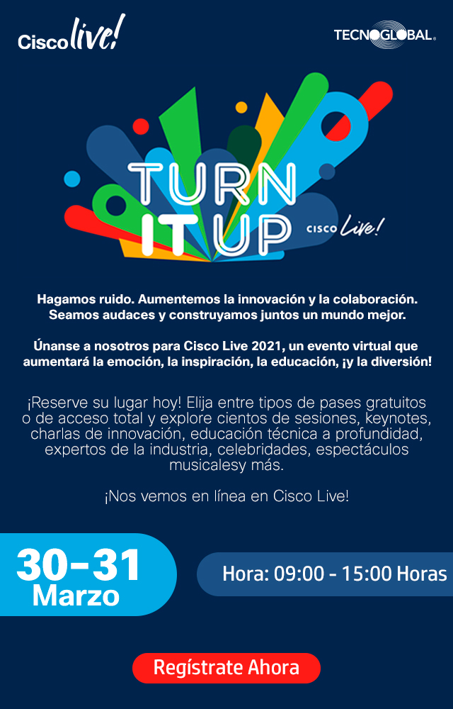 No se pierda la oportunidad de participar en el mayor evento del año que Cisco ha preparado para sus partners de toda América. Reserve su cupo y elija entre pases gratitos o de acceso total en https://www.ciscolive.com/2021.html