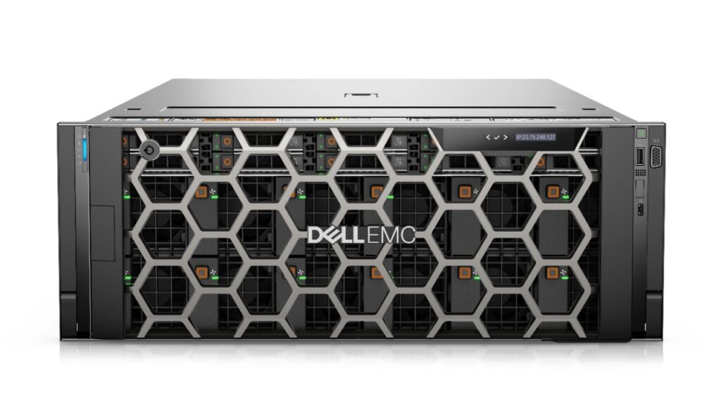 - Para las cargas de trabajo de IA contamos con el poderoso servidor PowerEdge XE8545, potencializando HPC Ready Solution para IA y Data Analytics, facilitando en un solo sistema IA, analíticos y cómputo avanzado para cargas de trabajo, el cual a su vez, duplica el rendimiento de HPC y aumenta el desempeño de machine learning hasta siete veces. PowerEdge XE8545 combina hasta 128 cores de procesadores AMD EPYC de 3a generación, cuatro GPUs de NVIDIA A100 y el rendimiento optimizado del software vGPU de NVIDIA en un servidor en rack de 4U de socket doble.