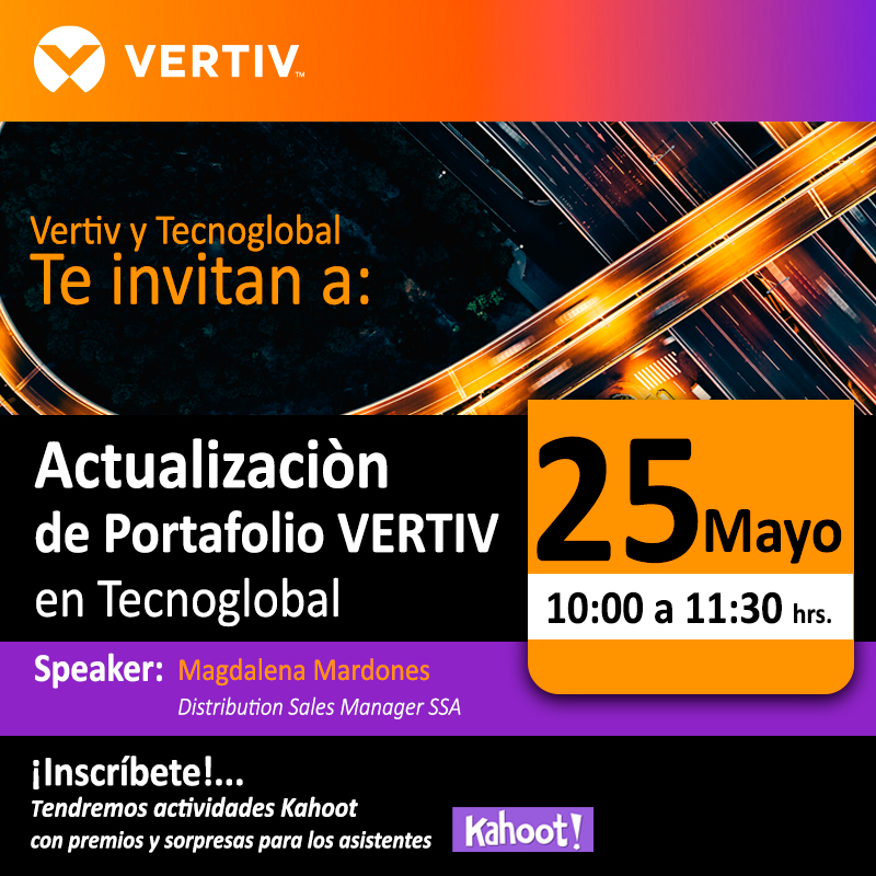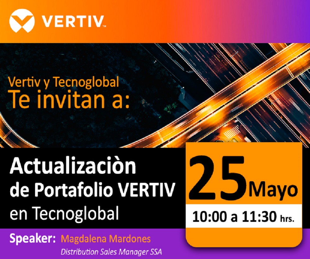 El próximo martes 25 de mayo, a las 10 de la mañana, el canal de Tecnoglobal conocerá cuáles son las soluciones de protección de energía de Vertiv más demandadas por el mercado en el webinar “Actualización de Portafolio Vertiv en Tecnoglobal”.