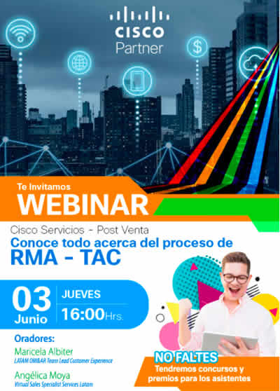 Este jueves 3 de junio, a las 16.00 horas, los canales de Tecnoglobal y Cisco tendrán la oportunidad de dar un paso adelante en el negocio de los servicios de post venta, en un webinar que les permitirá conocer todo acerca del proceso de RMA-TAC.