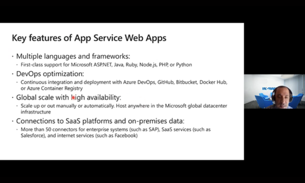 El pasado martes 10 de agosto tuvo lugar un nuevo webinar del ciclo de entrenamientos de Microsoft Cloud para clientes de Ingram Micro, en esta oportunidad para profundizar en Azure App Services.