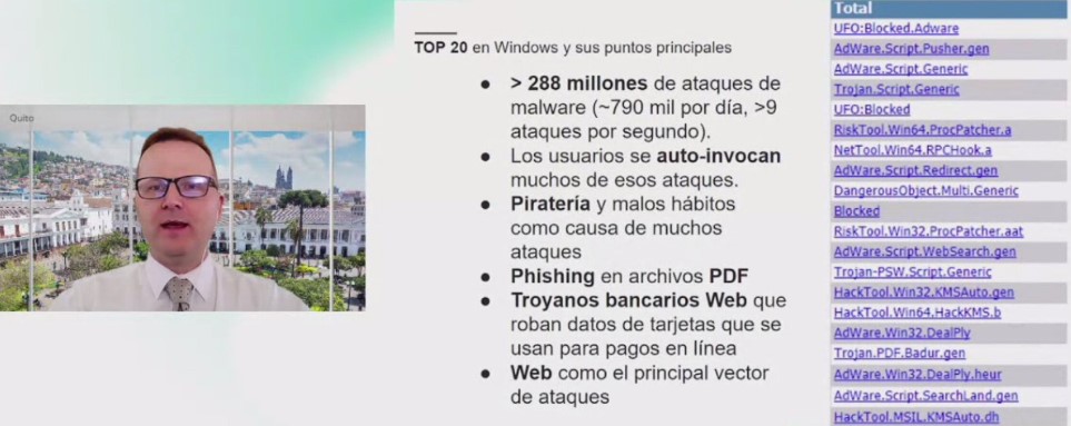 La tendencia de crecimiento en ciberataques también se refleja en todos los países, con la excepción de Costa Rica, que registró un leve aumento del 2%. La lista de países la lidera Ecuador (+75%), seguido por Perú (+71%), Panamá (+60%), Guatemala (+43%) y Venezuela (+29%). En total, solo el Top20 de malware en la región genera un promedio de 35 ataques por segundo. En este contexto, Brasil lidera la región con más de 1,390 intentos de infección por minuto, seguido de México (299 por minuto); Perú (96 por minuto), Ecuador (89 por minuto) y Colombia (87 por minuto).