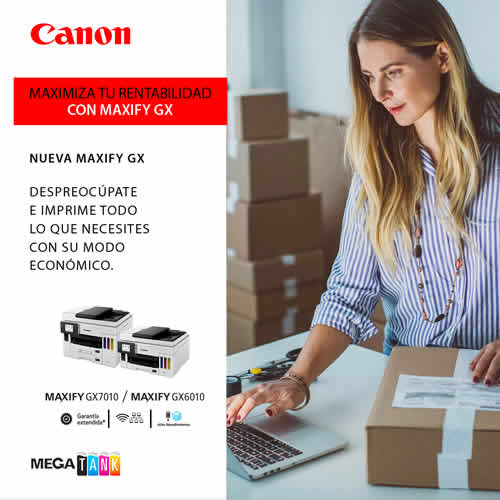 Ingram Micro Chile anunció la disponibilidad de las nuevas impresoras multifuncionales Canon Maxify GX7010 y GX6010, que cuentan con sistema MegaTank con depósitos de tinta rellenables de alto volumen.
