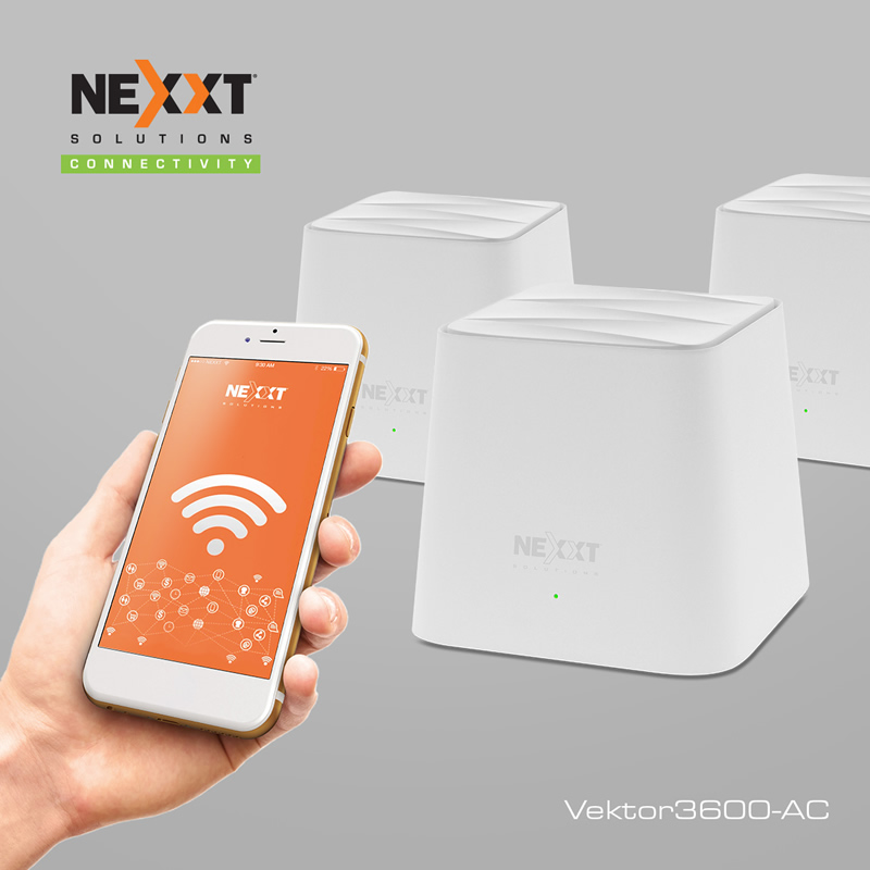 “Nexxt Solutions está impulsando el concepto de Smart Wi-Fi a través de Sistemas de Malla Modulares Wi-Fi, concebidos para brindar conectividad eficiente en todos los rincones del hogar y la oficina, permitiendo conectar más dispositivos simultáneamente que con otra solución. Mientras en las redes Wi-Fi convencionales, cuando vamos caminando por nuestra casa con el celular en la mano el dispositivo se va conectando al router/extensor que tiene más cerca, provocando microsegundos de corte de una red para entrar en otra, con los sistemas de nodos Vektor Mesh de Nexxt Solutions la conexión es continua y sin caídas”, explicó Erika Merlo. Y subrayó: “El Sistema Modular Mesh Vektor 3600-AC de Nexxt Solutions ofrece 428 m2 extras (en condiciones óptimas) de transmisión de la señal con la integración de cada nodo, lo cual se traduce en un alcance mucho mayor al de un router o amplificador convencional. Extiende además la cobertura de la red al reducir efectivamente los puntos muertos a través de una señal ultrarrápida, estable y segura.”