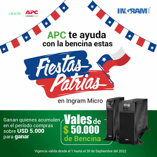 Una nueva promoción lanzó Ingram Micro y APC, que busca premiar al canal por sus compras de UPS de la familia SRT, regalando vales de bencina para estas Fiestas Patrias.