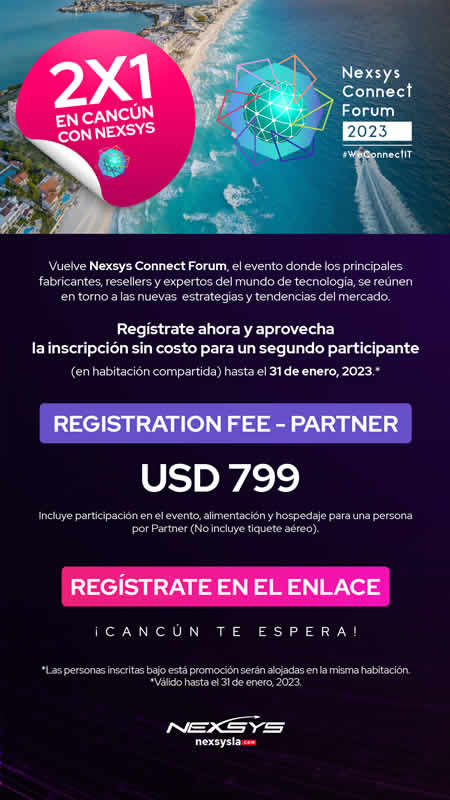 Este año 2023 vuelve el evento “Nexsys Connect Forum”, un encuentro donde el mayorista reúne a los principales fabricantes, resellers y expertos del mundo de tecnología, en torno a las nuevas estrategias y tendencias que presenta el mercado. Esta cita tendrá lugar en la ciudad de Cancún, en México.