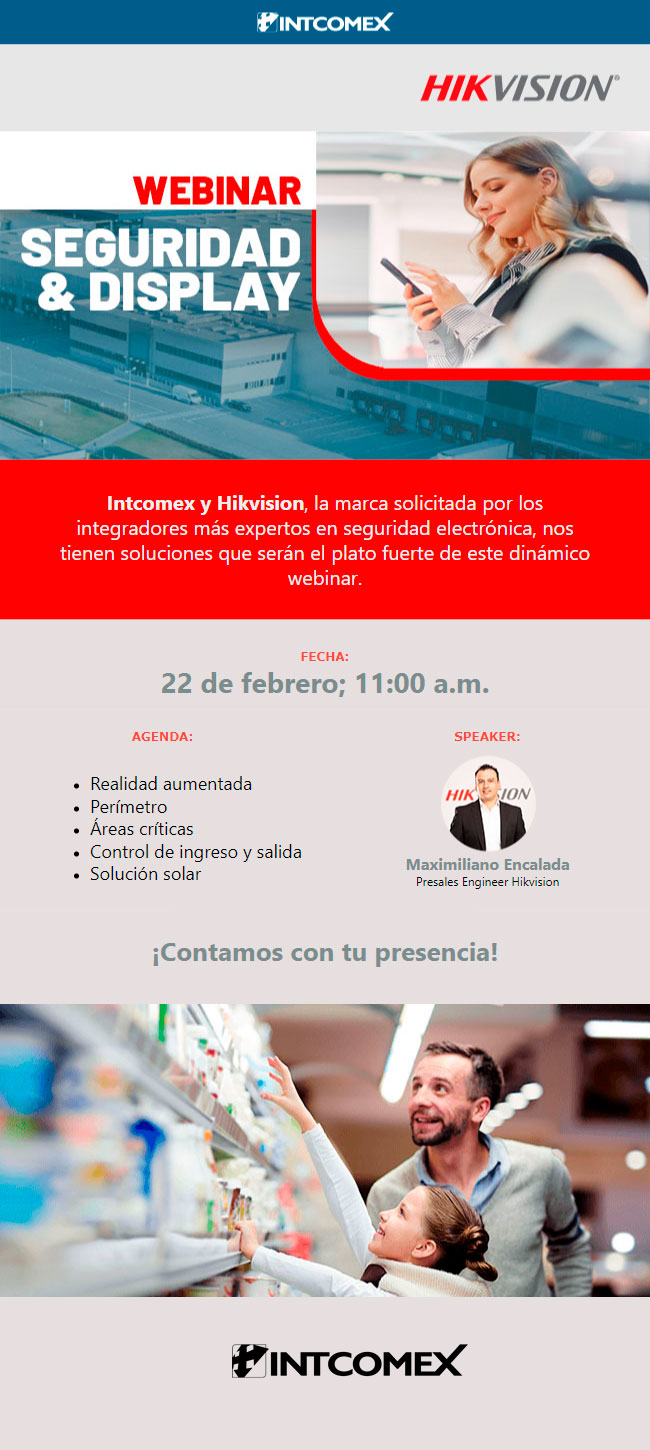 Intcomex Chile y Hikvision, marca solicitada por los integradores más expertos en seguridad electrónica, invitan al canal de distribución a participar del Webinar “Seguridad & Display”.