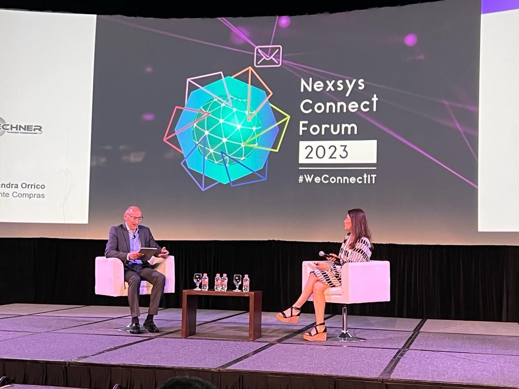 Alejandra Orrico, representante del partner en el encuentro, recibió el premio de manos de Gilbert Chalem, Presidente de Nexsys Latinoamérica.