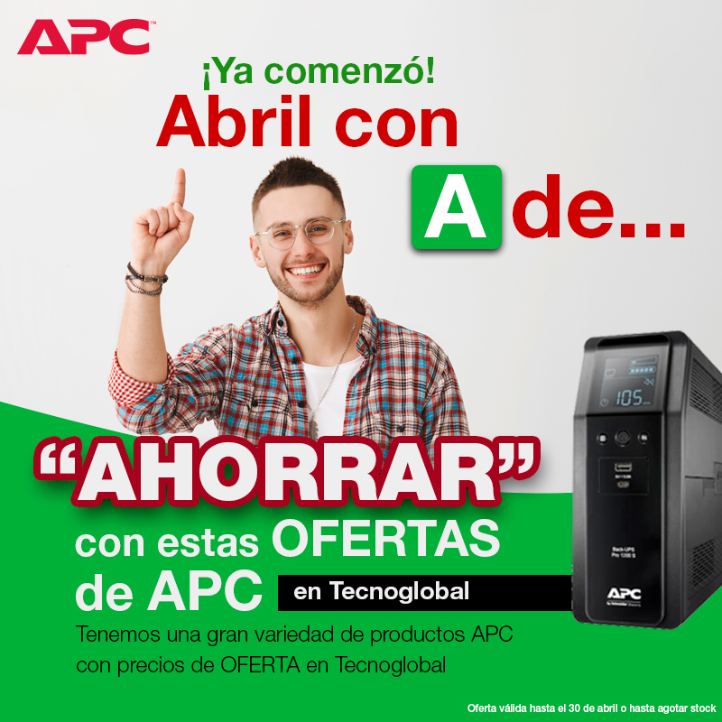 Durante este mes, APC y Tecnoglobal siguen sorprendiendo a sus clientes con las mejores ofertas del mercado con la campaña “Abril con A de Ahorrar”, que reúne más de 15 productos en oferta.